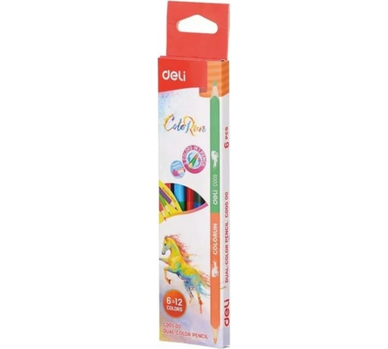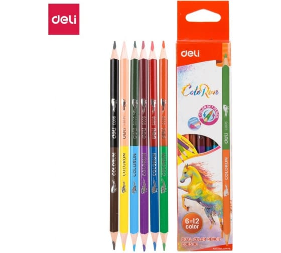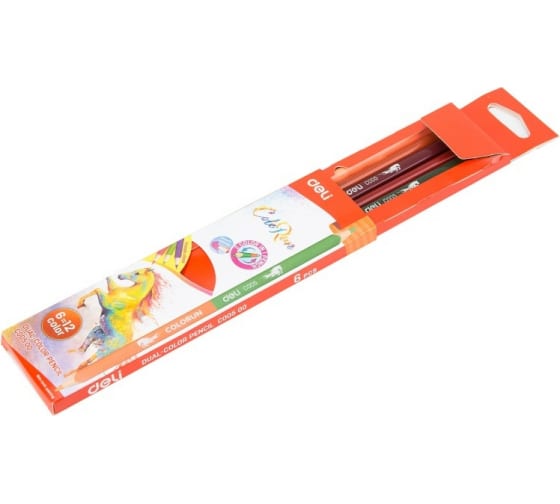 Цветные карандаши DELI ColoRun EC00500 двуцветные липа 12 цветов коробка/европодвес упаковка, 24 упак 1027253 предназначены для творчества и хобби.