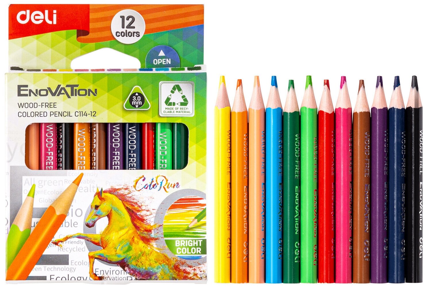 Карандаши цветные Deli EC114-12 Enovation трехгран. пластик 12цв. коробка/европод. (12шт)