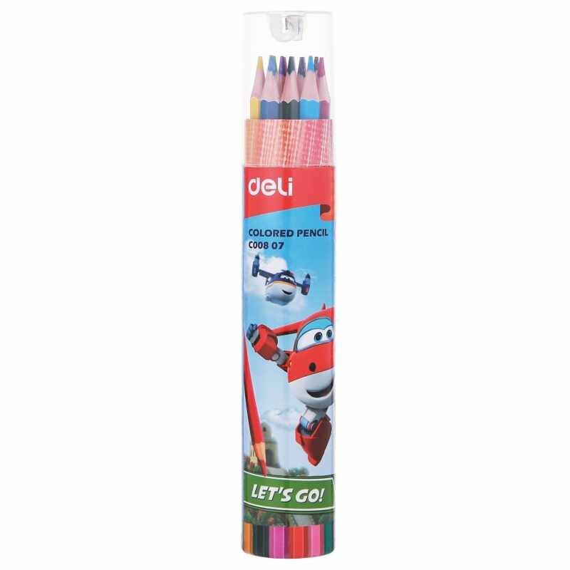 Красивые заточенные цветные карандаши упакованы в пластиковую тубу с рисунком любимого героя из мультфильма"Супер Крылья". Данная конструкция поможет аккуратно хранить карандаши.