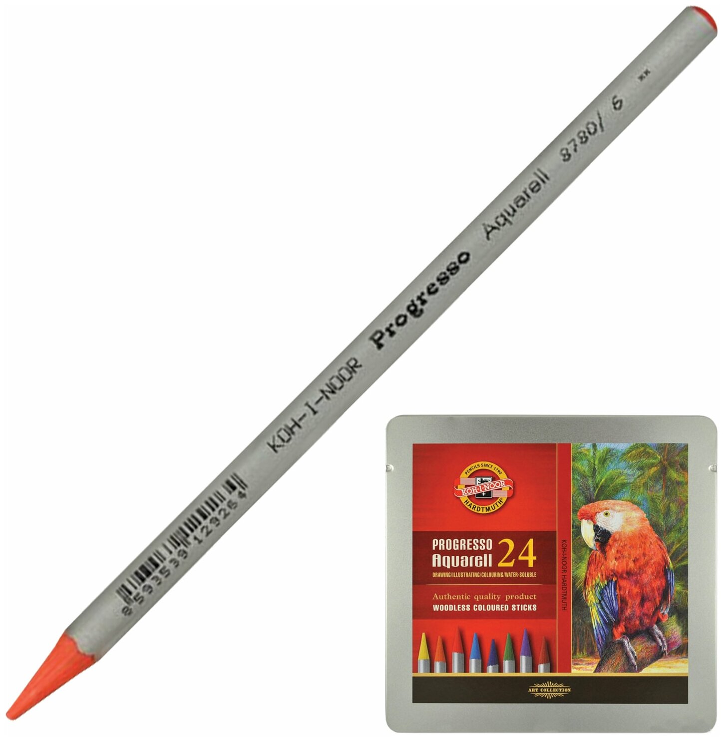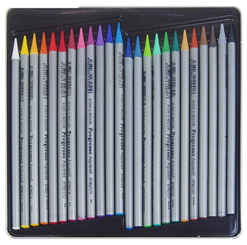 Набор карандашей цветных Koh-I-Noor Progresso Aquarell 8784 8784024001PL акварельные, форма круглая, корпус серый, 24 цвета, металлическая коробка