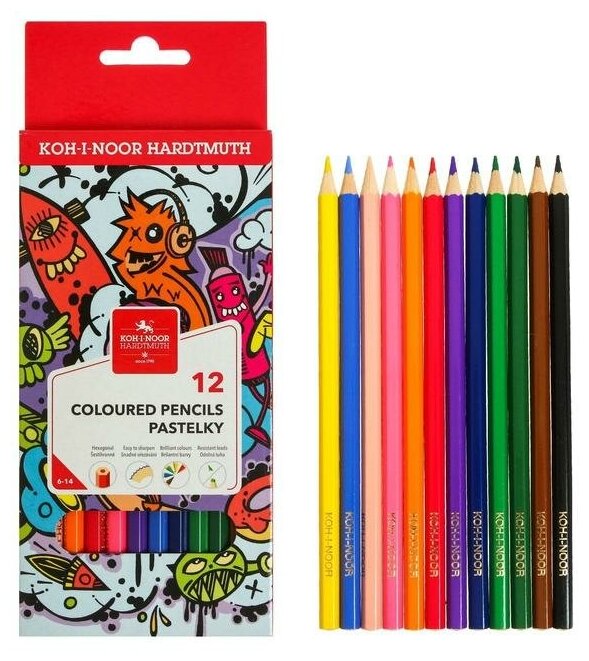 Карандаши цветные Koh-i-Noor Teenage 12 цветов - очень мягко пишут и легко затачиваются, благодаря корпусу из высококачественной древесины.