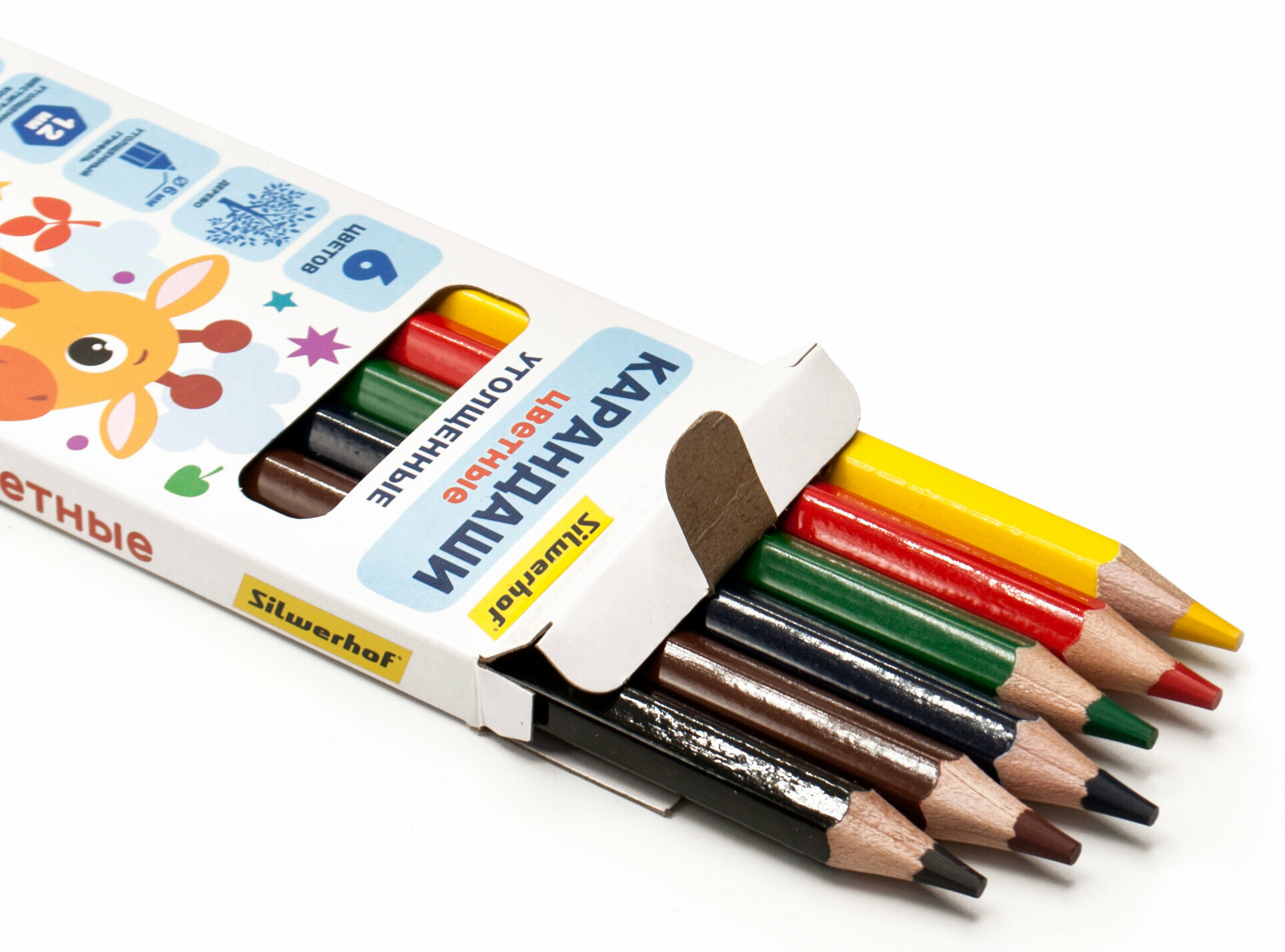 Карандаши цветные Silwerhof Jumbo Веселые друзья 6мм шестигран. дерево ассорти 6цв. коробка/европод.