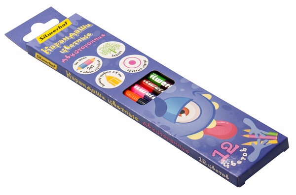 Карандаши цветные Silwerhof Монстрики двухцветные 2.8мм круглые дерево ассорти 12 цветов 6шт