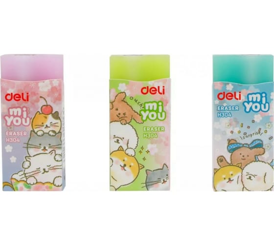 Ластик DELI EH304 прямоугольный 60x24x12 мм ассорти индивидуальная картонная упаковка, 30 шт 1580061 предназначен для удаления следов карандашей.
