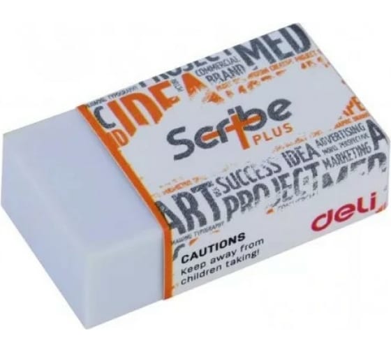 Ластик DELI Scribe Plus EH00310 40x22x12 мм белый индивидуальная картонная упаковка, 45 шт 411132 предназначен для удаления следов карандашей.