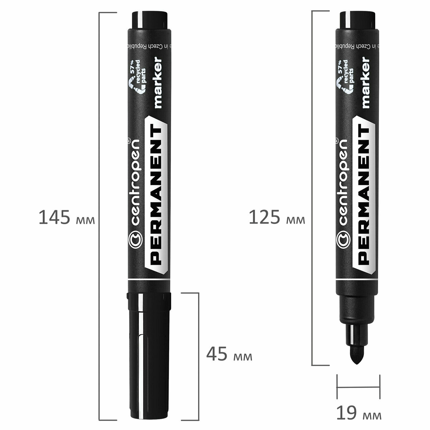 Маркер CENTROPEN поставляется в круглом черном корпусе диаметром 20 мм с деталями в цвет чернил. Проводимая линия письма - 2,5 мм. Хранить с плотно закрытым колпачком в горизонтальном положении.