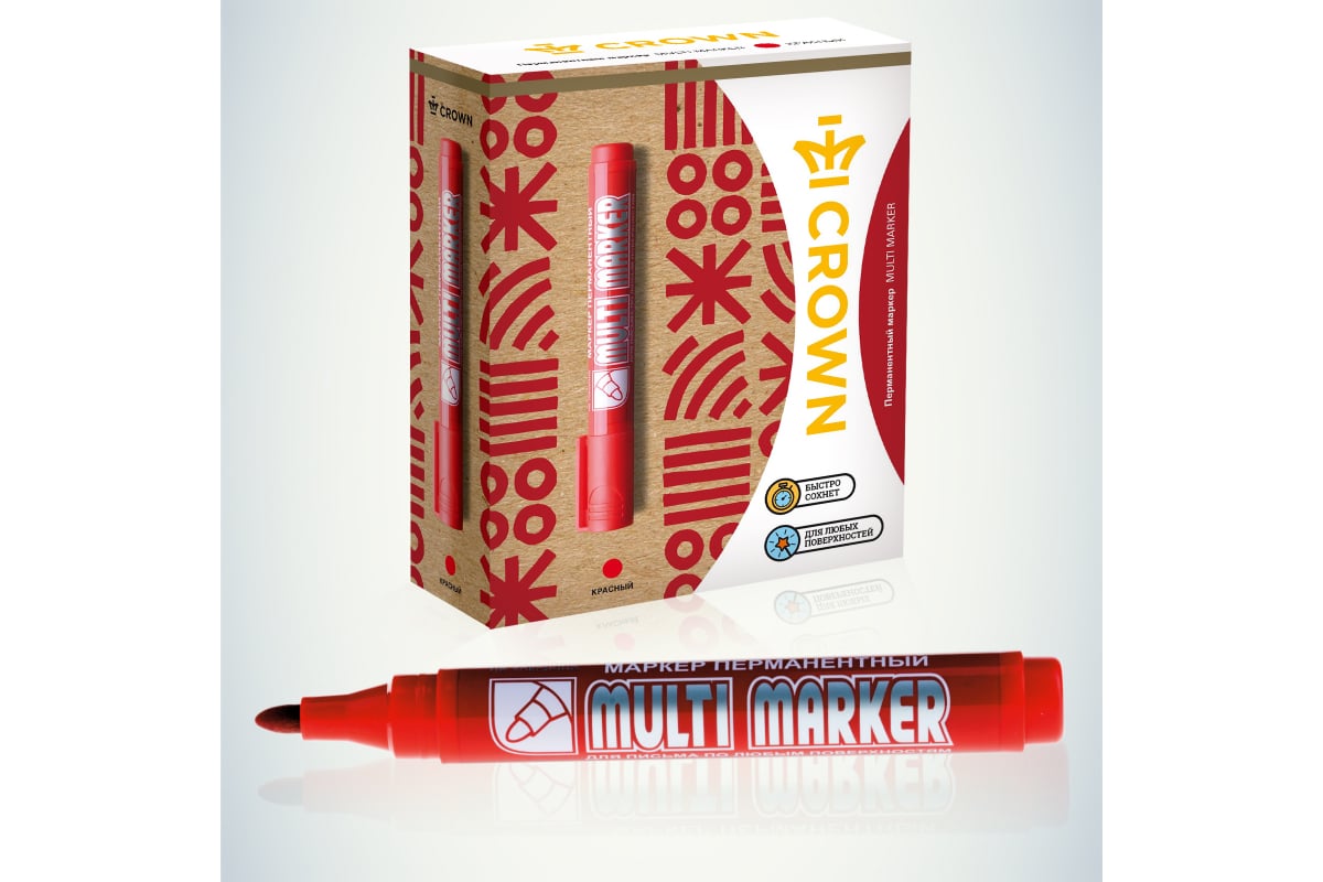 Перманентный маркер Munhwa Crown Multi Marker красный, пулевидный, 3мм CPM-800 представляет собой разметочный инструмент, который подходит для большинства гладких и шероховатых поверхностей.