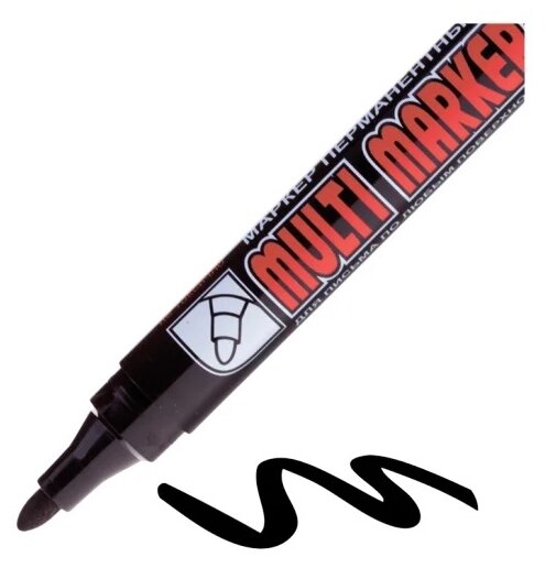 Перманентный маркер Munhwa Crown Multi Marker черный, пулевидный, 3мм CPM-800 представляет собой разметочный инструмент, который подходит для большинства гладких и шероховатых поверхностей.