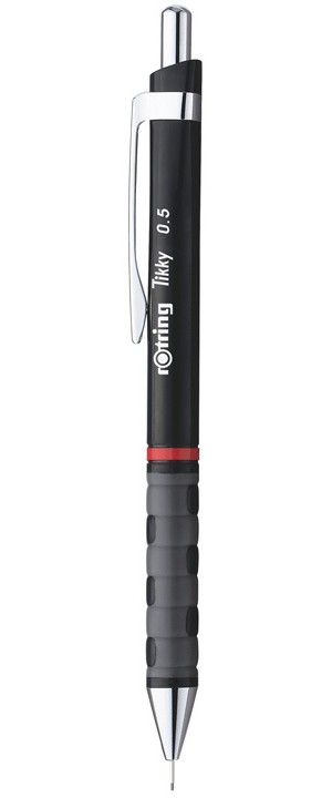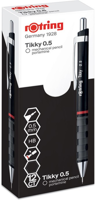 Мех.карандаш Rotring Tikky. Эргономичная волнообразная прорезиненная зона захвата обновленного корпуса из высококачественных твердых и мягких материалов. Отлично чертит по линейке или трафарету. Встроенный ластик под кнопкой. Толщина линии 0,5мм в соответствии со стандартами ISO. Сменные стержни HB.