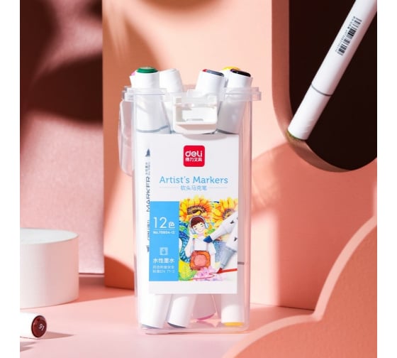 Набор маркеров для скетчинга DELI 70804-12 двойной пишущий наконечник 12 цветов пластиковая коробка 12 шт 1482357 предназначен для творчества.