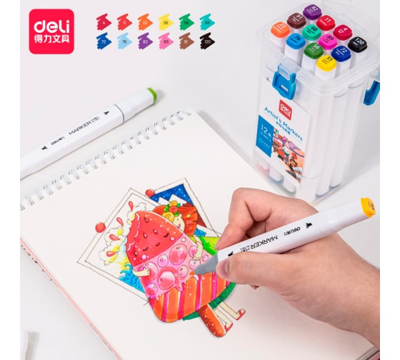 Набор маркеров DELI подходит для рисования и создания скетчей.