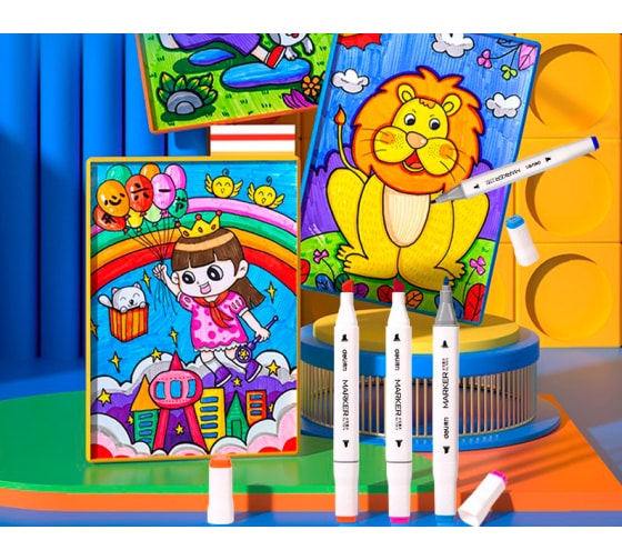 Двусторонняя конструкция маркеров позволяет прокрашивать большие площади рисунка.
