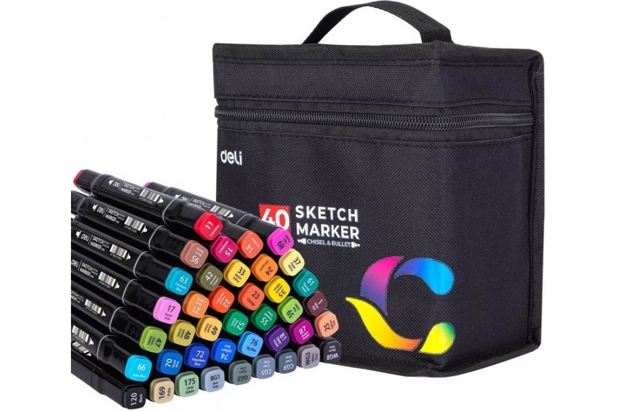 Набор маркеров для скетчинга DELI E70806-40 двойной пишущий наконечник 40 цветов текстильная сумка 40 шт 1482347 предназначен для творчества.
