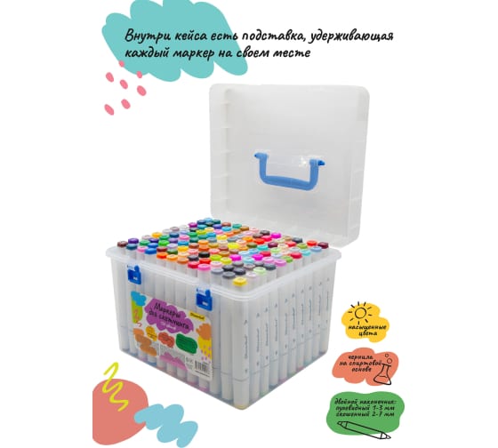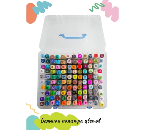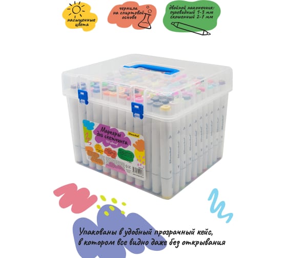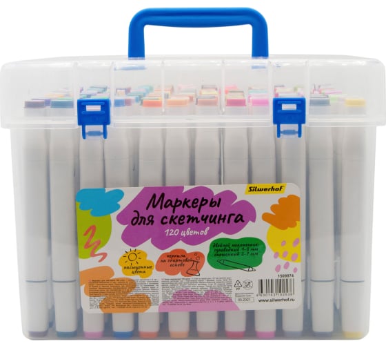 Набор маркеров для скетчинга SILWERHOF двойной пишущий наконечник 1-7 мм 120 цветов пластиковая коробка 120 шт 1509974 предназначен для нанесения надписей и рисунков.