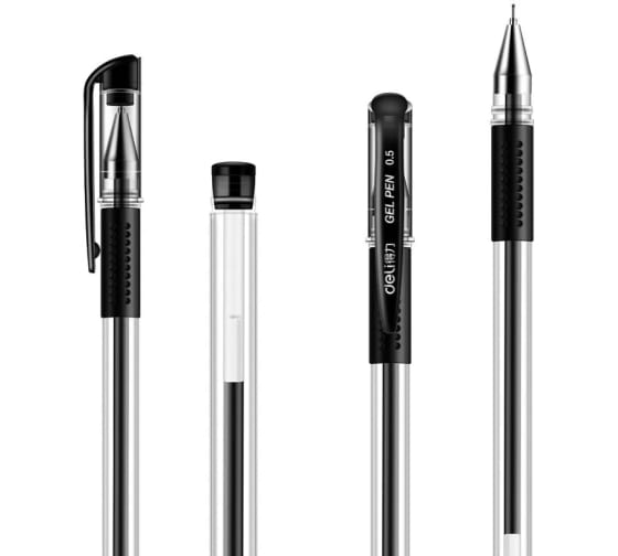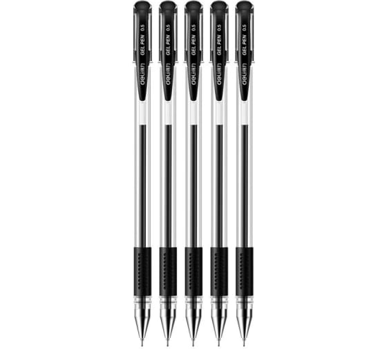 Набор гелевых ручек DELI 6605-BK корпус прозрачный/черный, чернила черные, блистер, 5 шт, линия 0.5 мм, резиновая манжетка, 20 шт в упаковке 1809003 подходит для ежедневного использования.