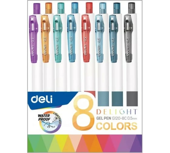 Набор гелевых ручек DELI EG120-8C 8 шт 8 цветов, 12 упак 1657446 предназначен для работы и учебы.