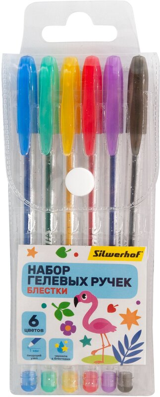 Набор ручек гелевых Silwerhof Веселые друзья блестки 6шт 6 цветов
