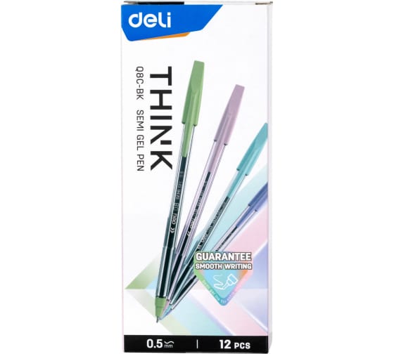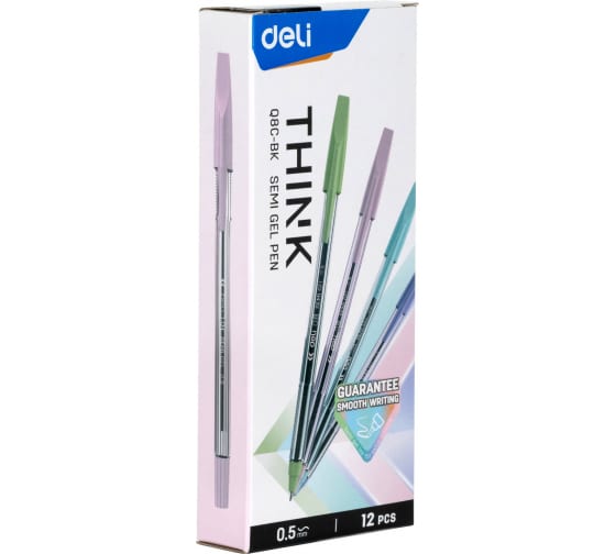 Набор шариковых ручек DELI Think EQ8C-BK черные чернила 12 шт линия 0.5 мм, 12 упак 1658023 предназначен для работы и учебы.
