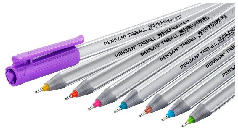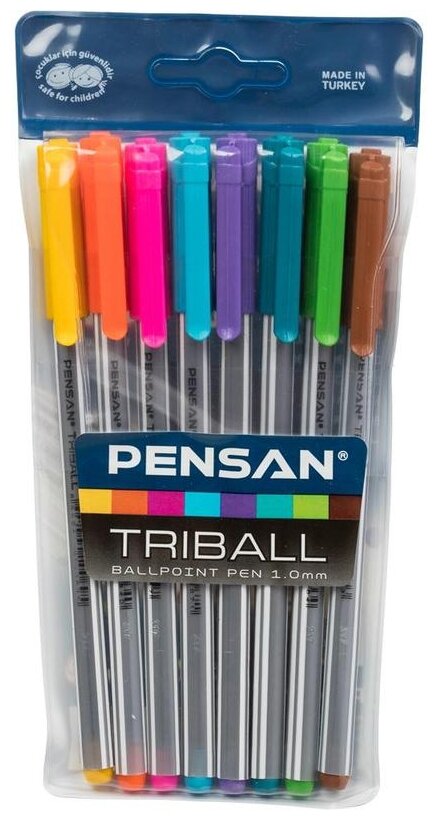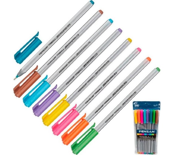 Набор шариков ручек Pensan Triball 1003/PVC8 корпус серебристый, d 1 мм, чернила ассорти, блистер, 8 шт 1481952 предназначена для письма.