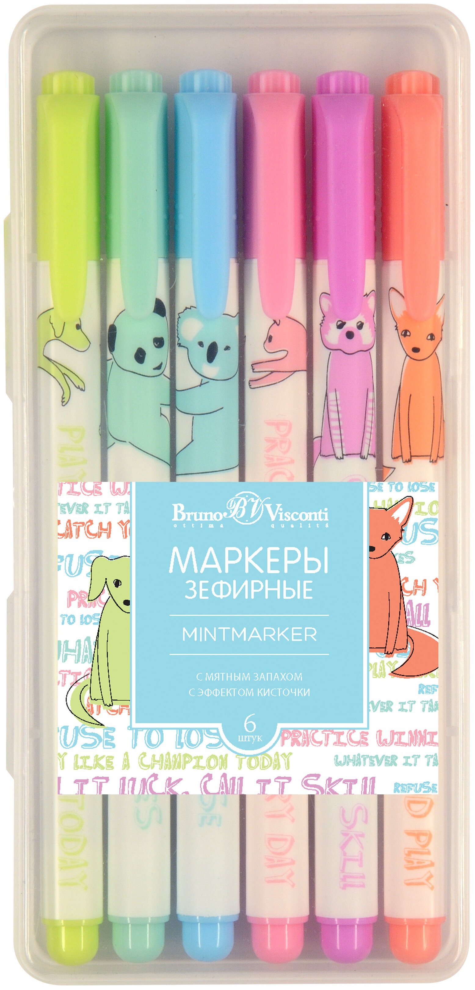 Набор текстовыделителей Bruno Visconti MintMarker 22-0075 скошенный пишущий наконечник, толщина линии письма 3 мм, 6 цветов, ПВХ-пенал