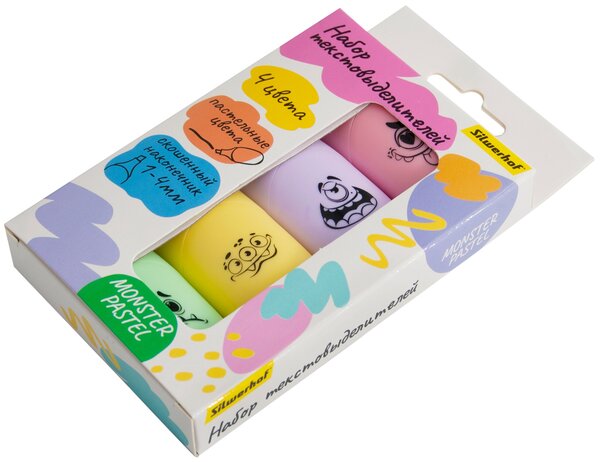 Набор текстовыделителей Silwerhof Monster Pastel, 1-4