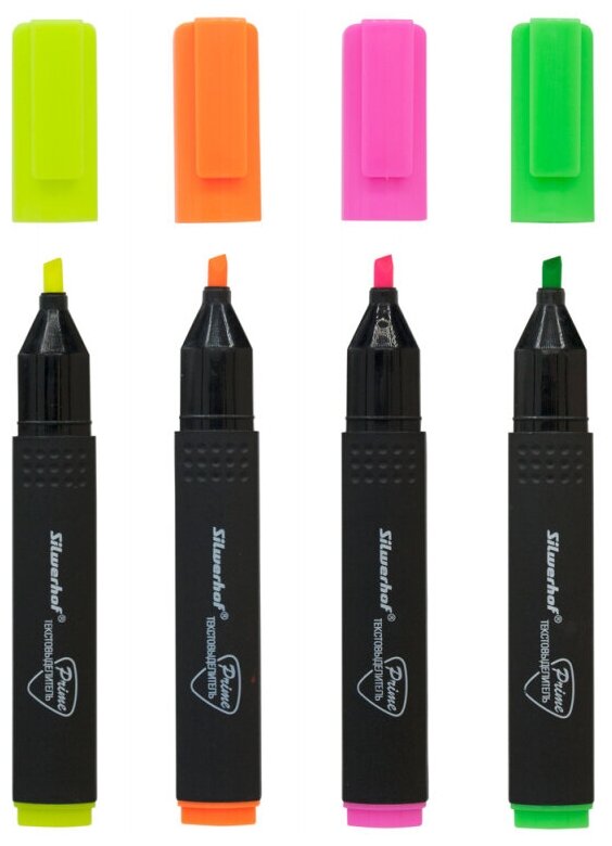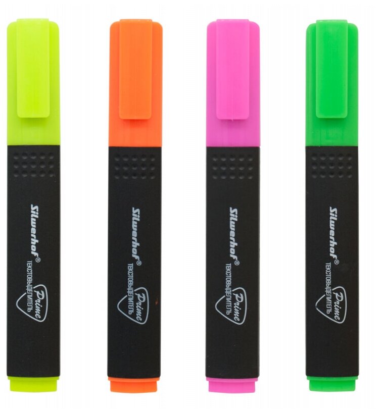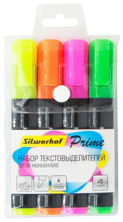 Набор текстовыделителей Silwerhof Prime скошенный пиш. наконечник 1-4мм 4цв. ассорти пакет с европодвесом (4шт.)