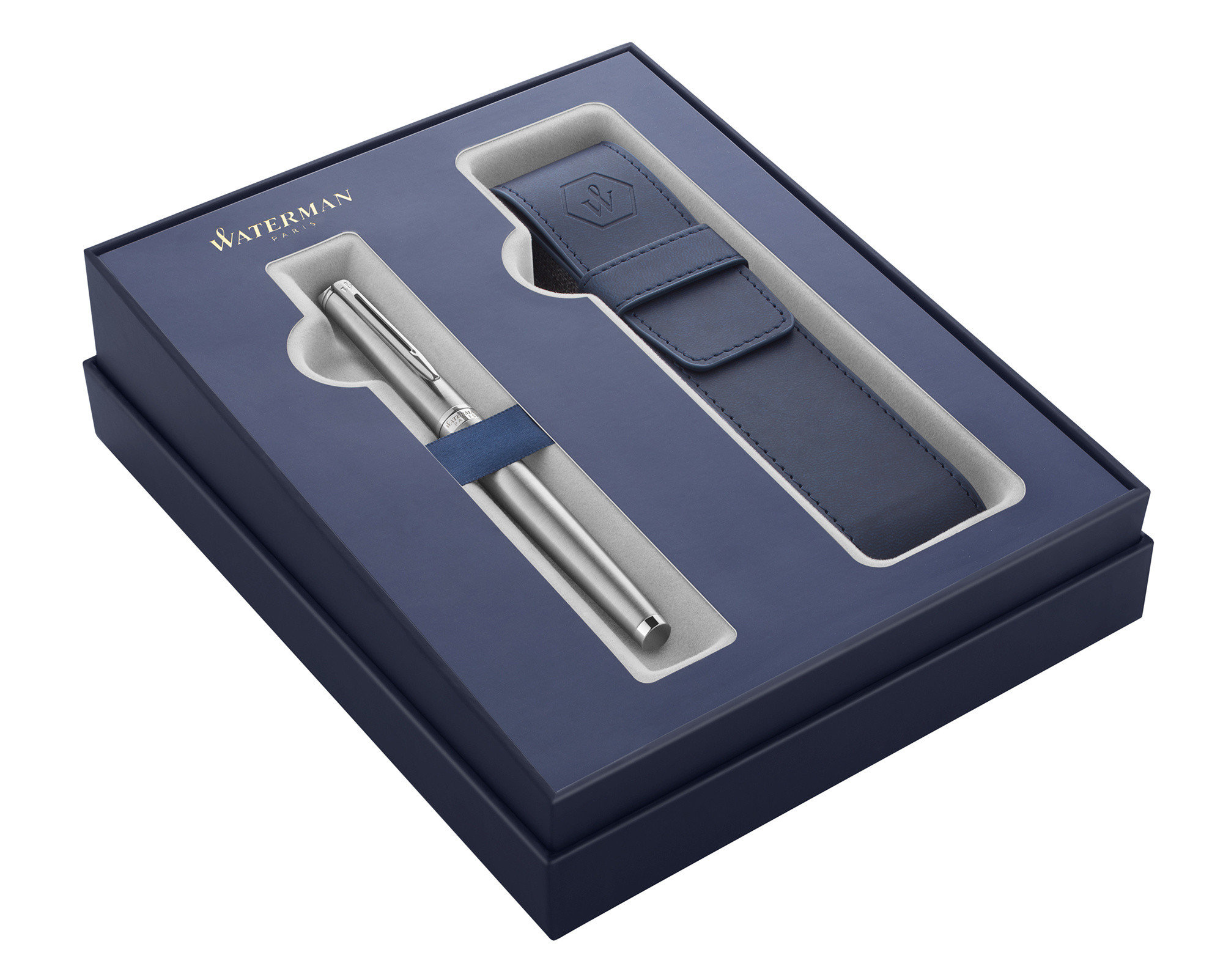(2122041) Stainless Steel CT ручка перьевая M синие чернила в компл.:чехол для ручки подар.кор.