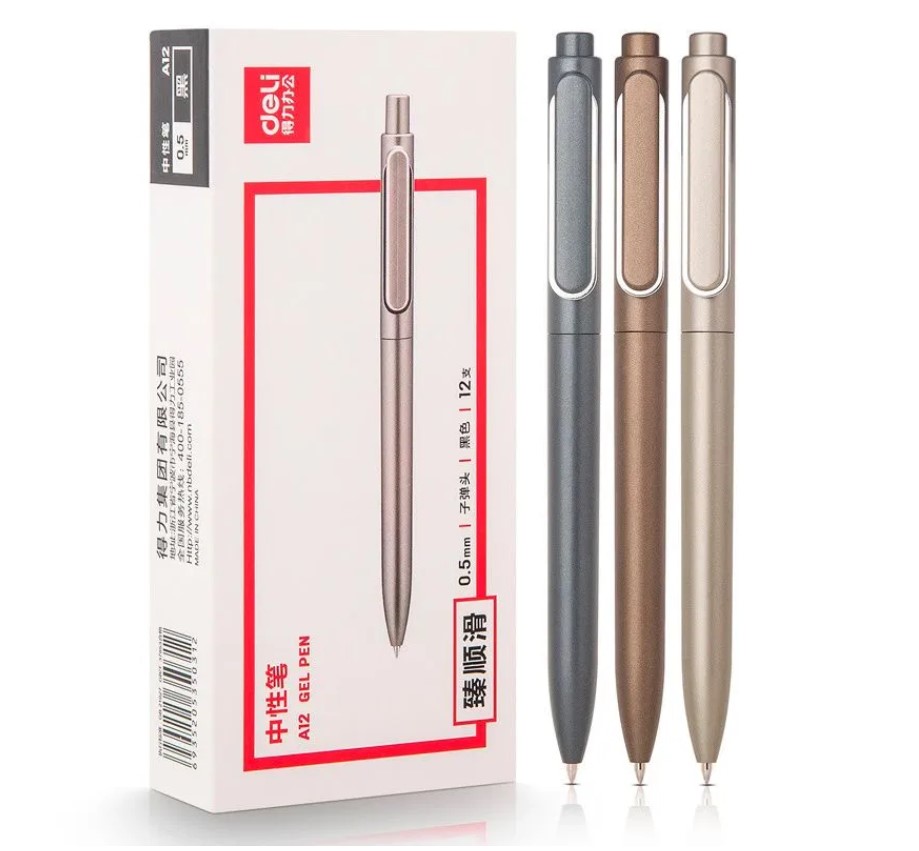 Ручка гелевая автоматическая Deli A12-BK корпус разноцветный черные чернила, линия 0.5 мм, упаковка 12 шт.