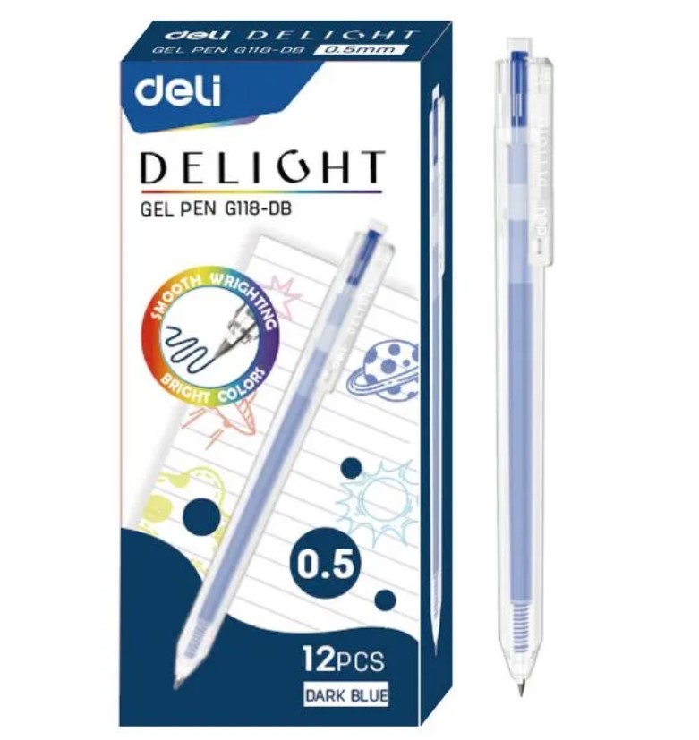 Ручка гелевая Deli Delight EG118-DB, корпус прозрачный, темно-синие чернила, линия 0.5 мм.