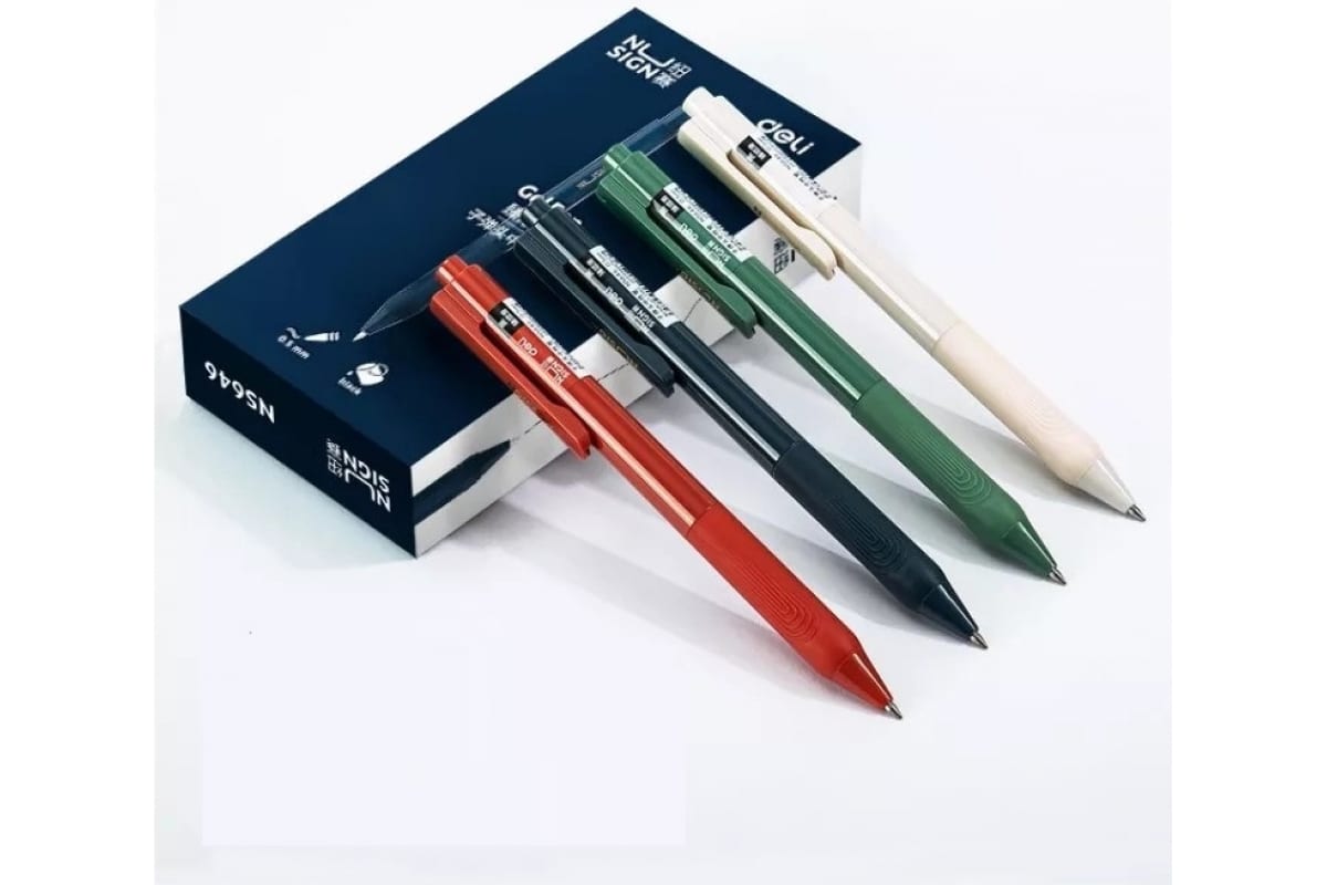 Автоматическая гелевая ручка DELI Nusign NS646 корпус ассорти черные чернила линия 0.5 мм, 12 шт 1657667 предназначена для работы и учебы.