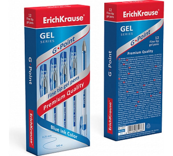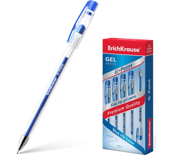 Гелевая ручка ErichKrause G-Point, синий 17627 предназначена для письма и рисования.