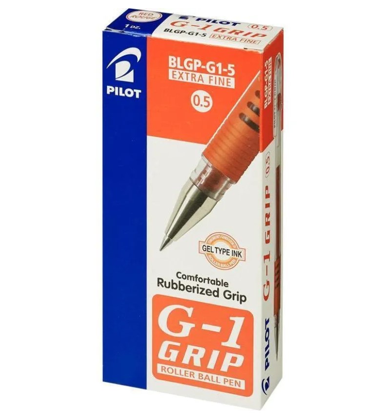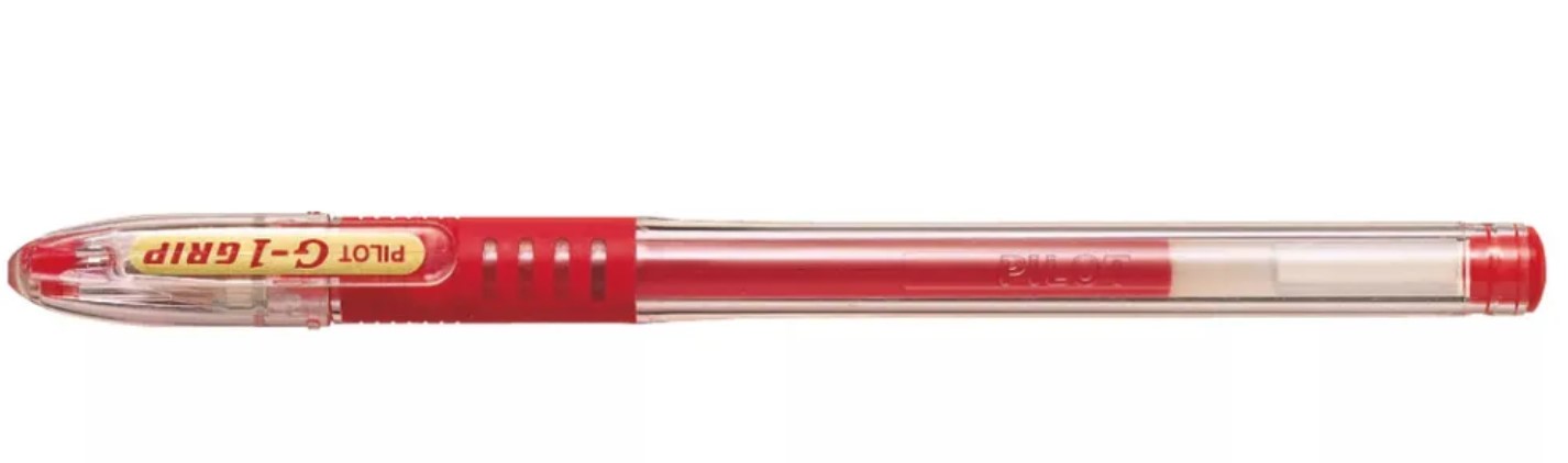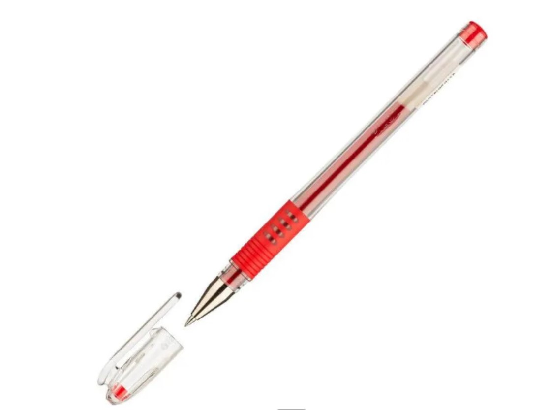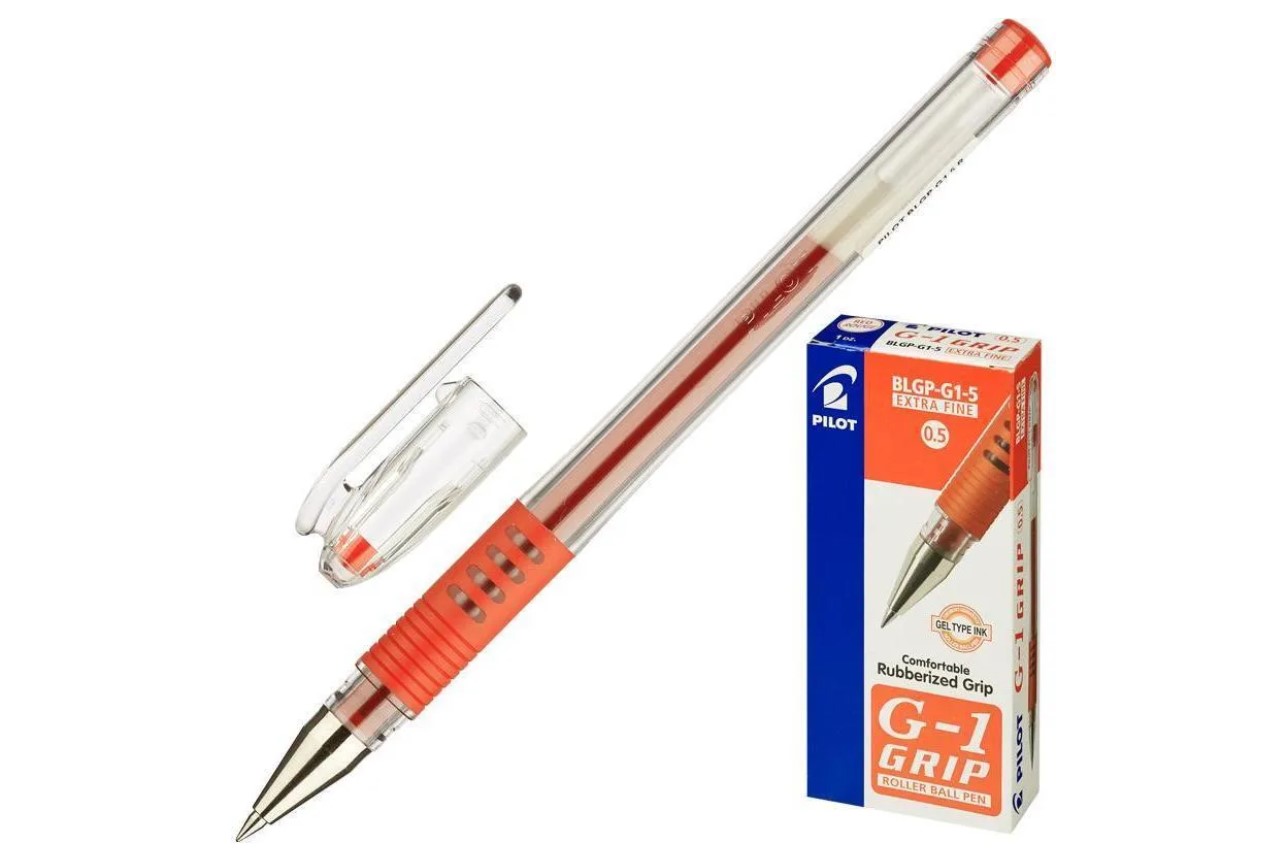 Ручка гелевая Pilot BLGP-G1-5-R круглый прозрачный обрезиненный корпус, d=0.5 мм красные чернила, сменный стержень, линия 0.3 мм, резиновая
