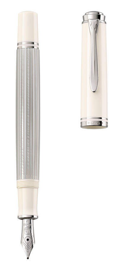 Ручка перьев. Pelikan Souveraen M 405 (PL818902) белый/серебристый F золото 14K покрытое родием подар.кор.экскл.поршневая