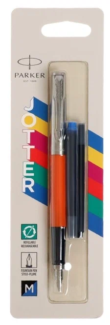 ручка перьевая, 2 сменных картриджа: синий и черный