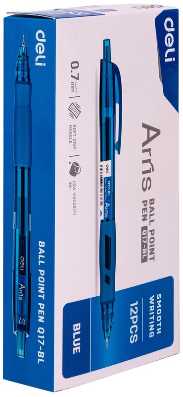 Ручка шариков. автоматическая Deli Arris EQ17-BL синий d=0.7мм син. черн. резин. манжета
