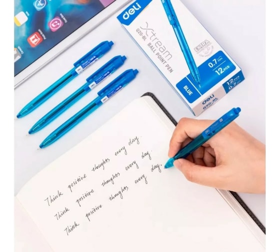 Автоматическая шариковая ручка DELI X-tream EQ20-BL синий/прозрачный корпус диаметр 0.7 мм синие чернила, 12 шт 1485126 предназначена для работы и учебы.