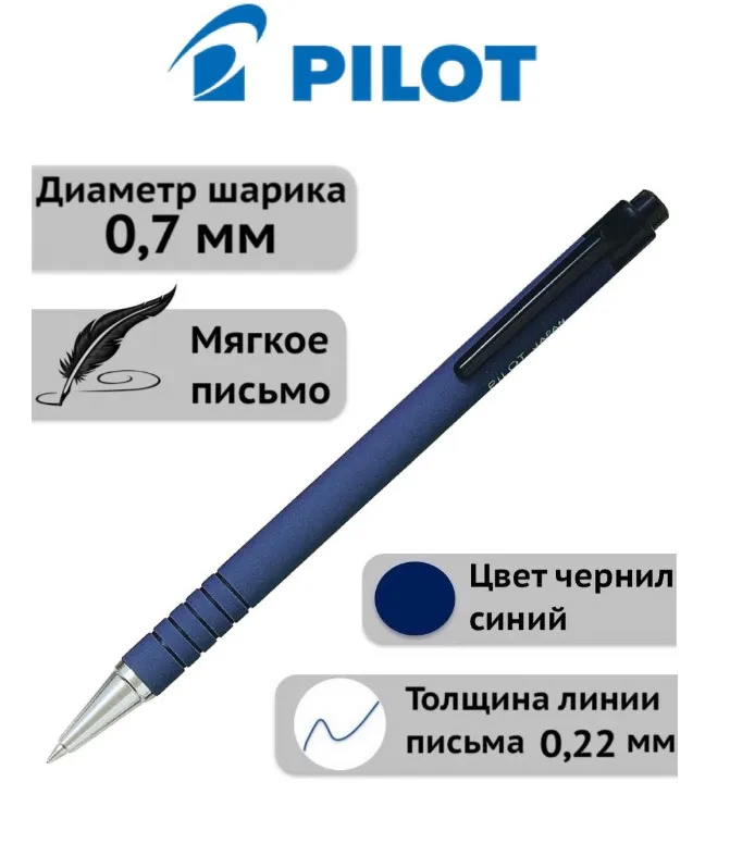 Ручка шариковая Pilot BPRK-10M-LB синий d=0.22мм синие автоматическая сменный стержень 1 стержень линия 0.22мм на масляной основе, упаковка 12шт.