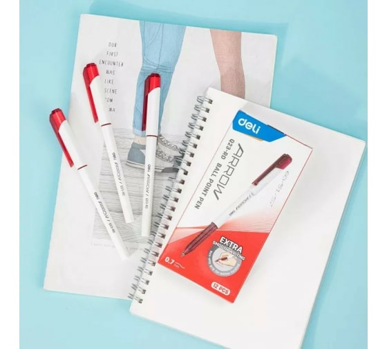 Шариковая ручка DELI Arrow EQ23-RD белый/красный корпус диаметр 0.7 мм красные чернила, 12 шт 1485597 предназначена для работы и учебы.