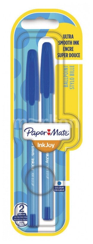 Ручка шариковая Paper Mate InkJoy 100 / 1956390 / S0957240 d=0.5 мм синие чернила блистер 2 шт., корпус треугольный, упаковка 12 шт.
