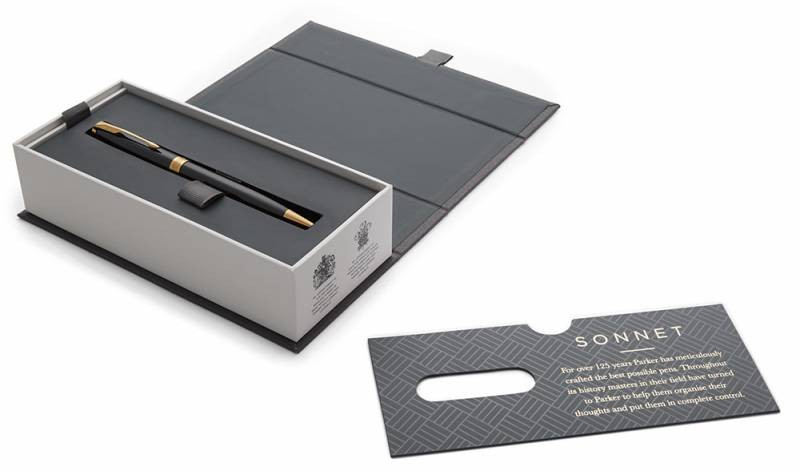 Отделка деталей: торец ручки: латунь покрытая золотом/зажим колпачка: сталь покрытая золотом/кольцо: латунь с золотым напылением