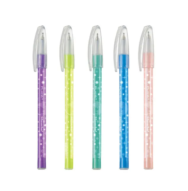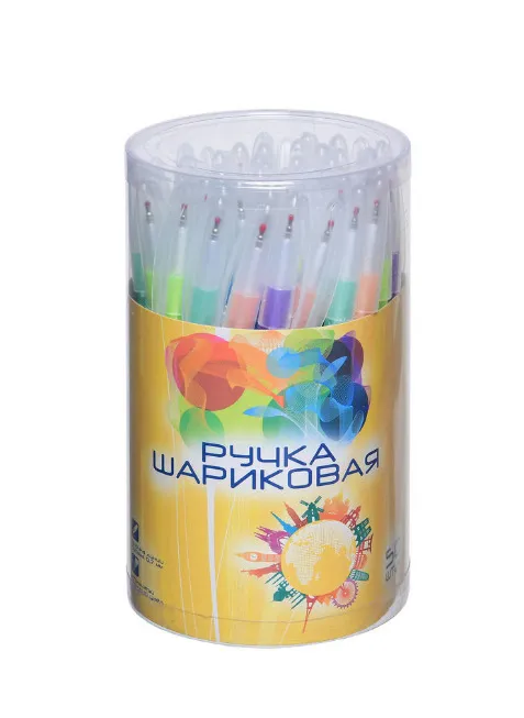 Ручка шариковая Silwerhof Солнечная коллекция Planet d=0.7мм синие упаковка пластиковый стакан одноразовая ручка линия 0.5мм, упаковка 50шт.