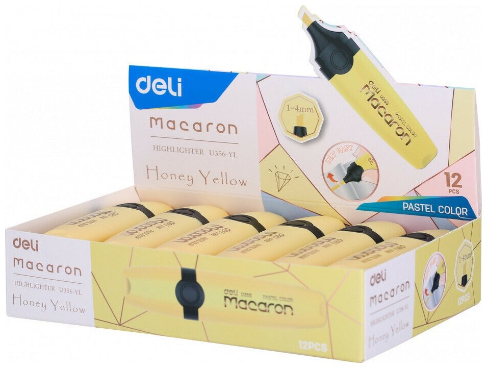 Текстовыделитель DELI Macaron EU356-YL скошенный пишущий наконечник 1-5 мм желтый пастельный, 12 шт 1204875 предназначен для выделения информации.