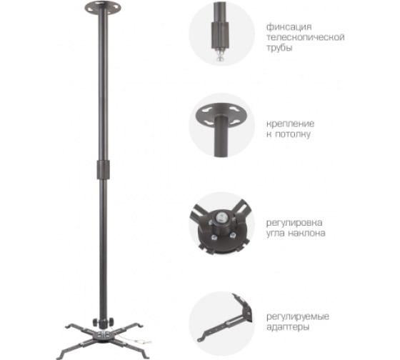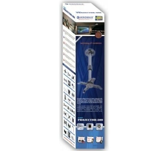 Кронштейн для проекторов KROMAX PROJECTOR-300 grey 20042 - надежный потолочный кронштейн для видео проекторов с удобной регулировкой наклона и поворота, плавной регулировкой положения проектора по высоте. Регулируемое расстояние от потолка до проектора 650-1000 мм. Максимальная нагрузка на крепление - 10 кг. Защита от падения. Универсальный потолочный кронштейн Projector-300 подходит для большинства видеопроекторов.