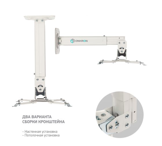Потолочный/настенный кронштейн для проектора ONKRON K5A K5A-W подходит для большинства современных проекторов весом до 10 кг.