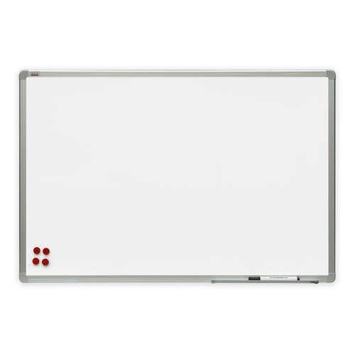 Описание: Керамическая поверхность для письма сухостираемыми маркерами и прикрепления информации магнитами. Рамка из анодированного алюминия с пластмассовыми уголками. Скрытое крепление к стене в четырех углах, крепежные элементы прилагаются.