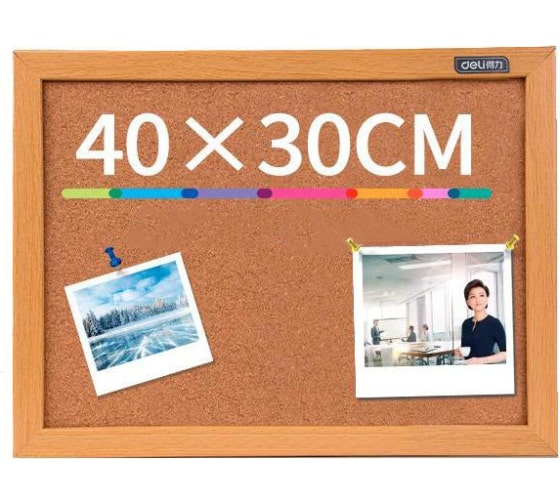 Пробковая доска DELI предназначена для размещения информации с помощью силовых кнопок. Это универсальный предмет визуализации своих желаний. На доску можно закрепить объявления, записки и другую информацию. Отличный помощник в детских садах, школах и офисах.