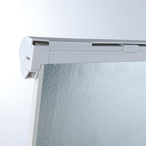 Описание: Поверхность сухостираемая магнитная. Размер доски: 70 x 100 см. Постоянная высота (186 см) и угол наклона (15°). Основание: полюс из алюминия и мобильная подставка (на колесах с механической блокировкой). Имеет прижимную планку для крепления блокнотов и полочку для маркеров.
