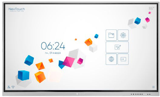 Мультисенсорное устройство, информацией на котором можно управлять при помощи рук, специальных маркеров или стилусов. В задачи интерактивной панели входит визуализация, взаимодействие с контентом и трансляция контента с мобильных источников. Возможно подключение к системам ВКС.