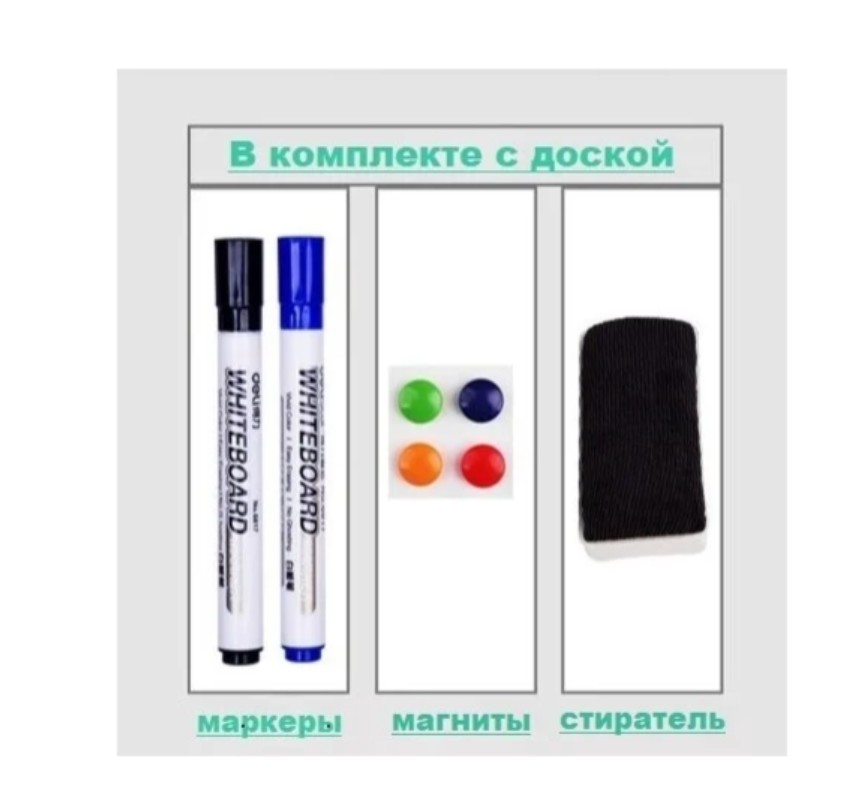 Комплектация 2 маркера, 4 магнита, полка для маркеров, щетка