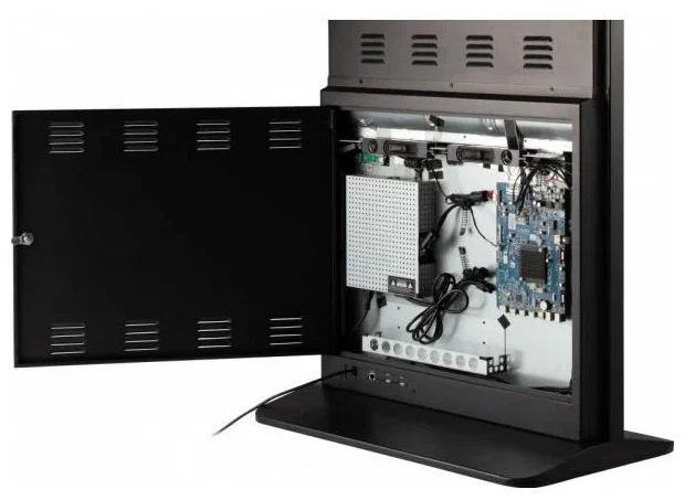 Электронный постер EP5542T компании ViewSonic представляет собой 55-дюймовый, отдельно стоящий интерактивный терминал с обтекаемым и изящным дизайном. EP5540T, передняя панель которого изготовлена из устойчивого к царапинам закаленного стекла, обеспечивающего дополнительную прочность, прекрасно выполняет функцию привлечения внимания в многолюдных зонах с высокой проходимостью. Электронный постер EP5542T с разрешением 4K, широкими углами обзора 178°/178° и двойными стереодинамиками мощностью 10 Вт обеспечивает передачу индивидуализированной мультимедиа-информации высокой четкости. Возможно воспроизведение фото- и видеофайлов с использованием встроенного медиаплеера и внутренней памяти емкостью 16 Гб или с подключением дополнительного медиаплеера в специальный отсек, расположенный внутри запирающейся для безопасности дверцы. Специальное программное обеспечение для управления дисплеем, а также совместимость с системами управления ProAV обеспечивает удобство управления несколькими дисплеями.